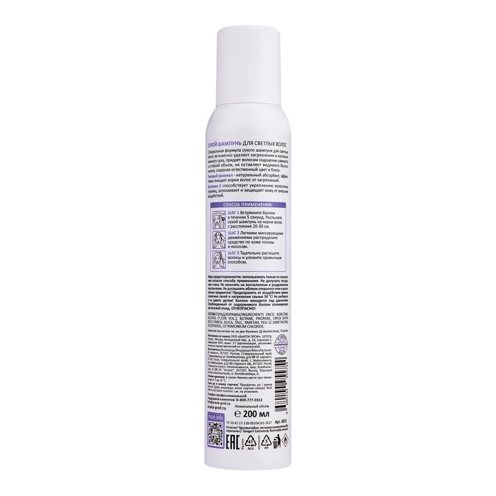 Специальная формула сухого шампуня для светлых волос мгновенно удаляет загрязнения и излишки кожного сала, не оставляет видимого белого налета, сохраняя естественный цвет и блеск. Она обеспечивает мгновенное освежение и придание волосам объема без использования воды, а благодаря компактной упаковке, сухой шампунь удобно взять с собой.