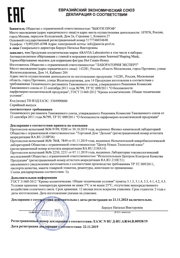 Медовое кремовое обертывание с легким термоэффектом для коррекции фигуры. Благодаря термоэффекту усиливается кровообращение и проникновение активных ингредиентов в кожу, улучшаются обменные процессы в подкожно-жировой клетчатке, что помогает сократить лишние объемы в проблемных зонах. Нежная текстура делает кожу бархатистой, придает сияющий ровный тон, активно увлажняет и питает кожу. Удобная для использования кремовая текстура позволяет насладиться салонной SPA-процедурой в домашних условиях.