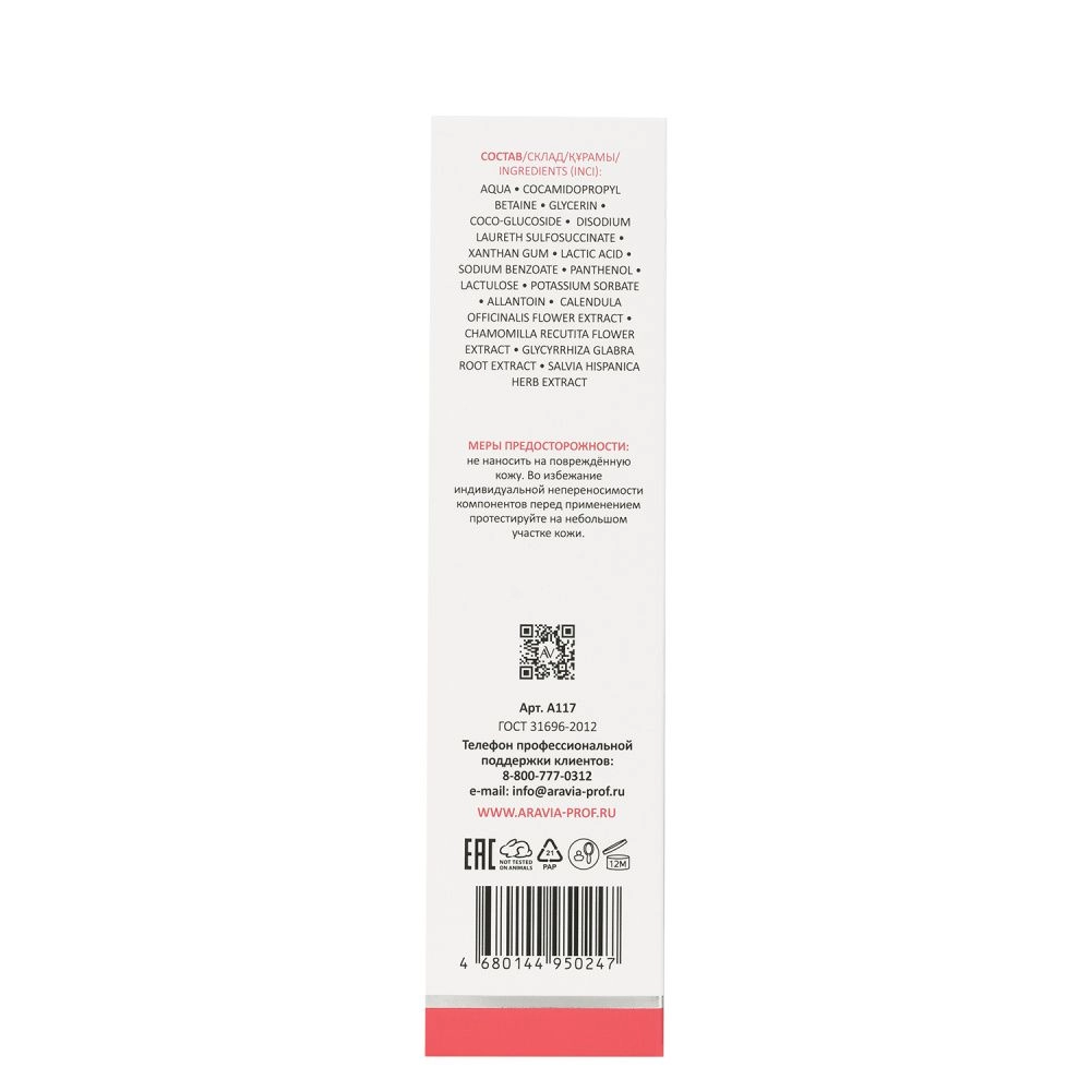 Состав продукта (INCI): Aqua, Cocamidopropyl Betaine, Glycerin, Coco-Glucoside, Disodium Laureth Sulfosuccinate, Xanthan Gum, Lactic Acid, Sodium Benzoate, Panthenol, Lactulose, Potassium Sorbate, Allantoin, Calendula Officinalis Flower Extract, Chamomilla Recutita Flower Extract, Glycyrrhiza Glabra Root Extract, Salvia Hispanica Herb Extract.