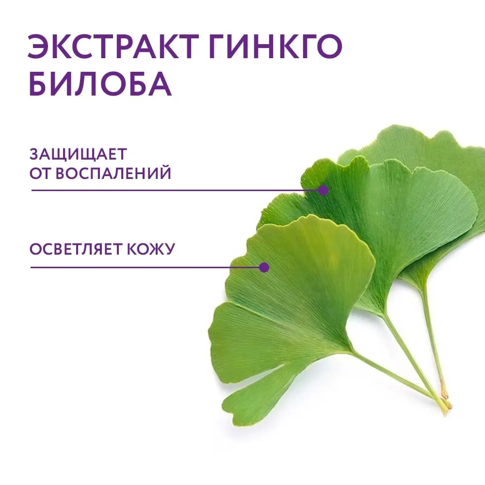 Флавоноиды в составе экстракта гинкго билоба борются с воспалениями и свободными радикалами. Они защищают кожу от негативного воздействия окружающих факторов, помогают ей быстрее восстанавливаться после повреждений.