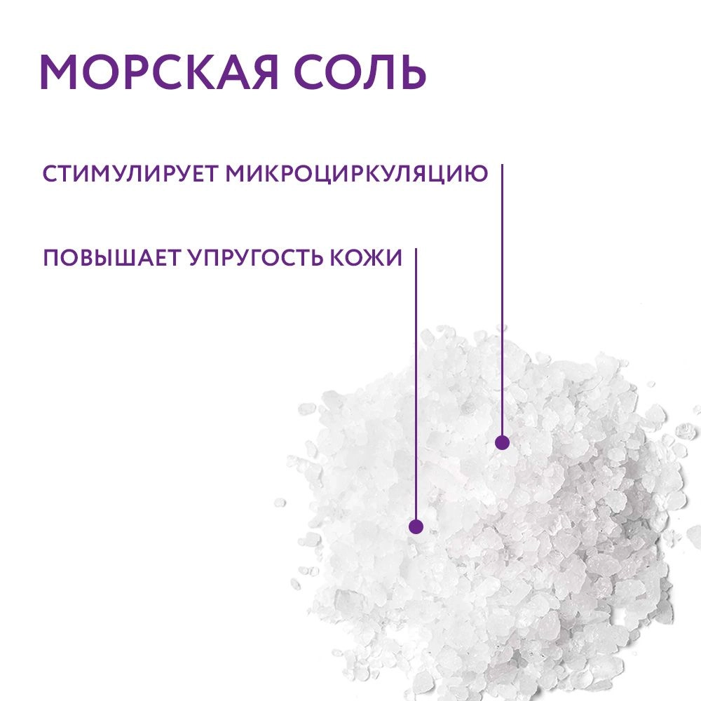 • для тела. Чаще всего морская соль в косметике используется в очищающих скрабах. Но они могут дополнительно питать, увлажнять, омолаживать – зависит от остальных ингредиентов. Также этот компонент используют в обертываниях, которые предназначены для коррекции фигуры. Очень распространен он и в смесях для ванн;